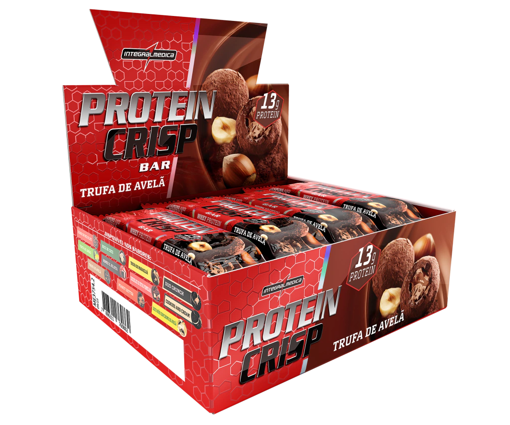 ¿Te apetecía comer dulces sin salirte de tu dieta? Protein Crisp Integralmédica es la barrita proteica con 13 g de proteína y baja en calorías. . Gran fuente de vitaminas, minerales y fibra, ayuda a saciar el hambre y prevenir el catabolismo. Protein Crisp es una barrita proteica completa, que combina una excelente calidad en la composición de sus ingredientes con un consumo práctico, tiene una excelente digestión y es excelente para quienes buscan una opción de alimento proteico saludable para incluir en dietas con diferentes objetivos, tales como: ganar masa. magro, pérdida de grasa y reemplazo de proteínas, por ejemplo. Puede utilizarse fácilmente como sustituto de alimentos dulces, al tener una textura suave y crujiente. Protein Crisp está formulado con Whey Protein y puede consumirse antes y después del entrenamiento, entre horas (snacks intermedios) y como sustituto de postres.